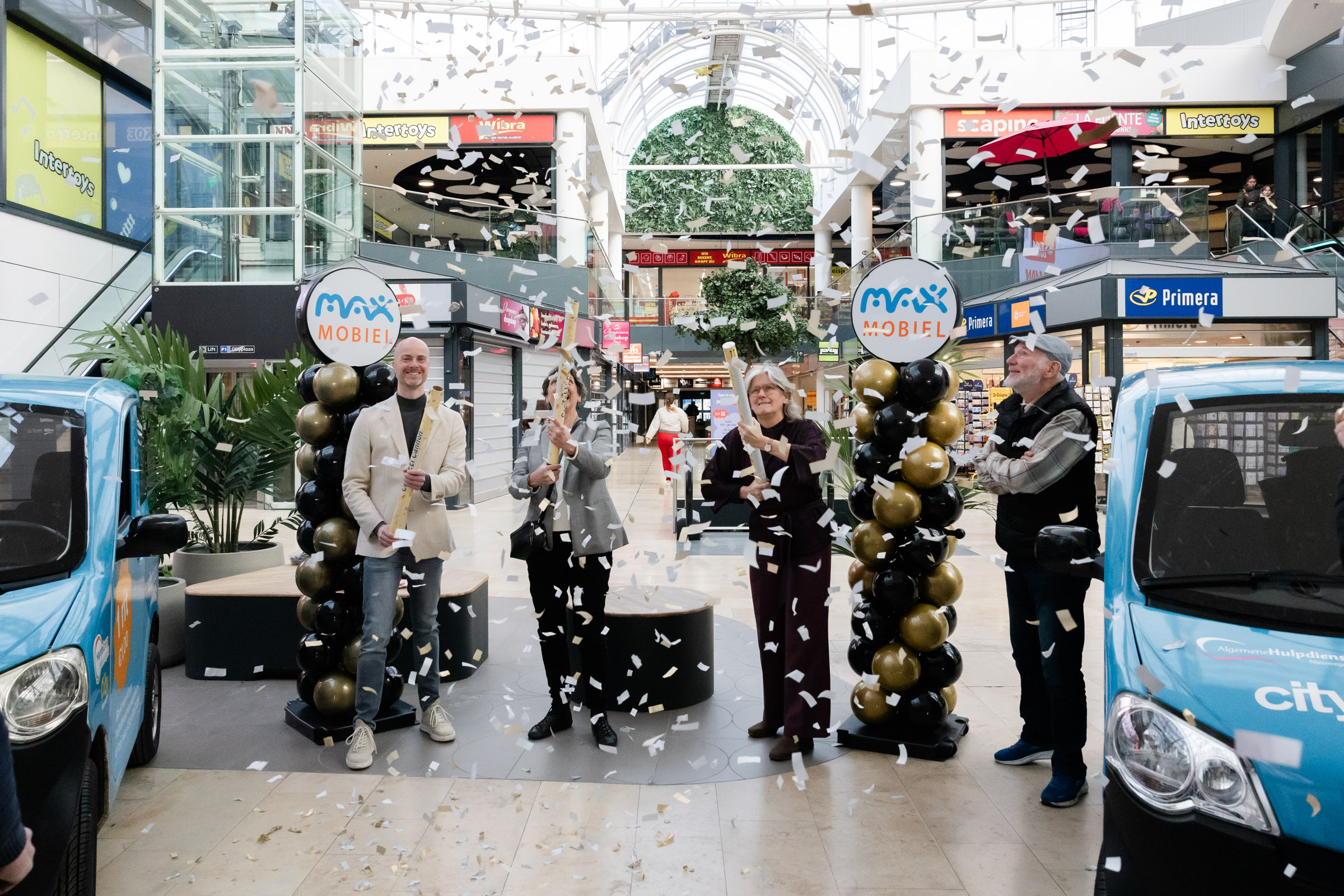 Onder grote belangstelling van chauffeurs, gebruikers, vertegenwoordigers van de gemeente en Wereldhave hebben we als Algemene Hulpdienst de start van de Max Mobiel autootjes beleefd.
